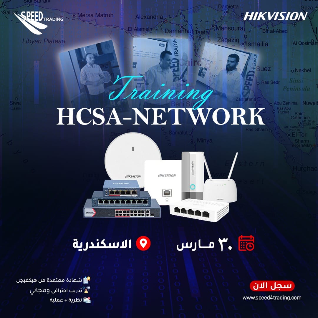 تدريب HCSA-NETWORK بالأسكندرية تحت إشراف المهندس زياد ناصر - 30 مارس 2026 في إطار تقديم أفضل الحلول الأمنية والتعليمية في مجال أنظمة المراقبة والتحكم، سبيد تُعلن عن تنظيم تدريب HCSA-NETWORK Training in ALEX المتخصص يوم الاثنين 30 مارس 2026، تحت إشراف المدرب المعتمد المهندس زياد ناصر. هذا التدريب يهدف إلى تأهيل المهندسين والفنيين في اSwitches […]